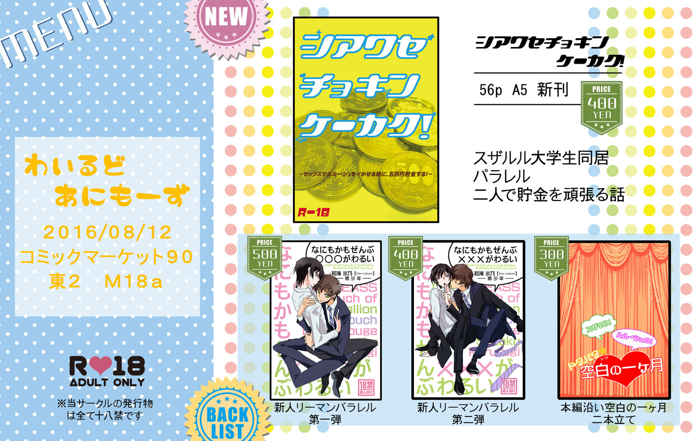 08/12 コミックマーケット90 東2ホール M18a